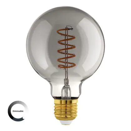 Die Eglo LED Globe E27 Fadenlampe Smokey 4W 100lm - 820 Extra Warmweiß | Dimmbar - Ersatz Für 15W ist eine effiziente E27 LED-Lampe mit Retrodesign und der perfekte Ersatz für Ihre konventionellen 15W Lampen mit E27. Zudem strahlt sie Licht in der Farbtemperatur 2000K - Extra Warmweiß aus und punktet durch eine lange Lebensdauer.