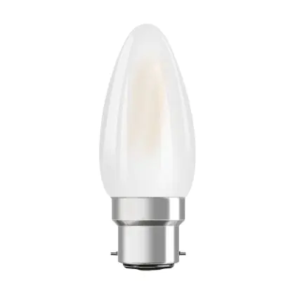 Die Ledvance Classic Performance LED Glühbirne B22d Kerze Fadenlampe Matt 4W 470lm - 827 Extra Warmweiß | Ersatz für 40W ist eine effiziente B22d LED-Lampe mit Retrodesign und der perfekte Ersatz für Ihre konventionellen 40W Lampen mit B22d. Zudem strahlt sie Licht in der Farbtemperatur 2700K - Extra Warmweiß aus und punktet durch eine lange Lebensdauer.