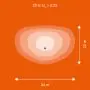 Beispiel: Wird eine Lampe mit einem Abstrahlwinkel von 60 Grad an der Decke (2,5 m Höhe) angebracht, erzeugt sie einen Lichtkegel von 2,9 Metern Durchmesser. Hat die Lampe hingegen einen Abstrahlwinkel von 120 Grad, beträgt der Lichtkegel 8,7 Meter im Durchmesser. |
