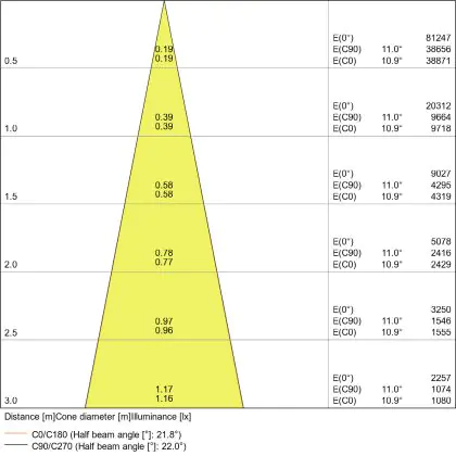 Der Abstrahlwinkel bezeichnet den Winkel, in dem das Licht aus der Lichtquelle ausgestrahlt wird. Er wird in Grad (D) angegeben. Je geringer die Gradzahl des Abstrahlwinkels ist, desto kleiner ist auch der Durchmesser des Lichtkegels, den die Lichtquelle produziert.