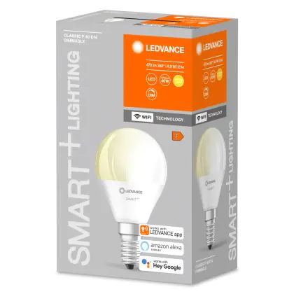 Die Ledvance Smart+ Wifi E14 Birne 5W 470lm - 827 Extra Warmweiß | Dimmbar - Ersatz für 40W ist eine effiziente E14 LED-Lampe und der perfekte Ersatz für Ihre konventionellen 40W Lampen mit E14-Sockel. Zudem strahlt sie Licht in der Farbtemperatur 2700K - Extra Warmweiß aus und punktet durch eine lange Lebensdauer.