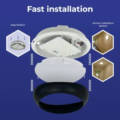 Beschreibung Noxion LED-Wand- und Deckenleuchte Pro V2 Weiß 12/16/20W 2400lm - 830-840-865 CCT | 325mm - IP65 - Bewegungs- und Lichtsensor - Not 3H + Ring Schwarz