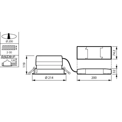 Beschreibung Philips LED Downlight LuxSpace Kompakt tief DN571B 20.9W 2600lm 75D - 830 Warmweiß | 214mm - Aluminium Reflektor